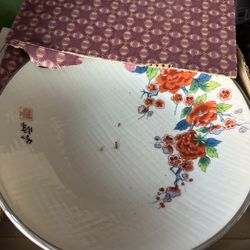 Japanese Porcelain Floral Silver Rim Bowl Signed 10"$8Los Angeles, CA