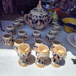 1950's GERZ German Castle Soup Lidded Tureen 13 Mugs plus 3 Goblets $125Quartz Hill, CA