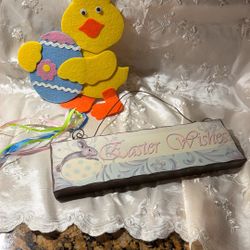Easter Wishes Wooden Sign And Chick Decoration, 2 For $5$5Burbank, CA