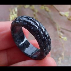 Certified Jadeite Jade 101141 Hand Carved black Ring size6.75 $85Pasadena, CA