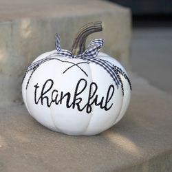 Handmade Thankful Pumpkin Decor Rustic Farmhouse Fall Table Centerpiece White Pumpkin With Bow$50Lake View Terrace, CA