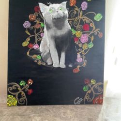 Oil Pastel Hand Painted Cat With Background Flowers$55Palmdale, CA