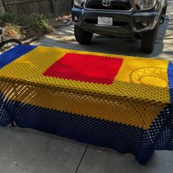 7’ x 7’ Romanian flag colors hand crocheted quilt$50Tujunga, CA
