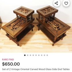 1960's Asian HANDCARVED COFFEE TABLE & 2 SIDE END TABLES$600Canyon Country, CA