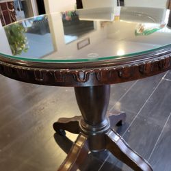 Antique solid wood pedestal round table with glass tops$380Santa Clarita, CA