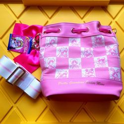Sailor Moon Pink Checkered Bucket Crossbody Boxlunch Exclusive Bag