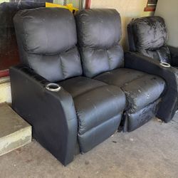 Black Faux Leather Sofa Set With Recliner $999Lancaster, CA