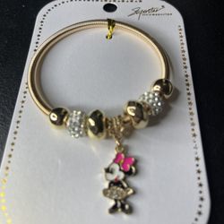 Disney Minnie Mouse Gold Charm Bracelet Dangle Beads Flexible$13Monrovia, CA