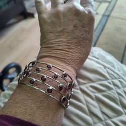 Vintage Natural Garnet Sterling Silver Bracelet for Women Handmade Bangle Style January Birthstone L 6.5-8 Inch$45Quartz Hill, CA