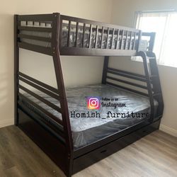 Twin/Full Expresso Bunk bed w. Drawers & Ortho Mattresses Included $625San Fernando, CA