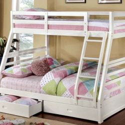 White Twin Over Full Bunk Bed With Storage $574Lancaster, CA