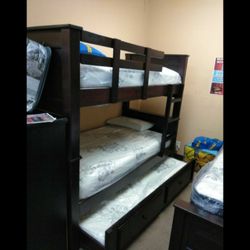 TWIN OVER FULL PINEWOOD BUNK BED MATTRESSES INCLUDED $780San Fernando, CA