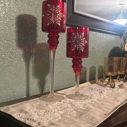 two ruby red glass Christmas snowflake votive candle holders$15Lancaster, CA