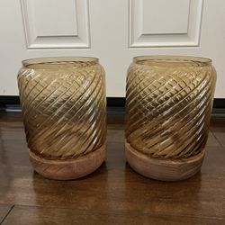 amber glass & wood candle holder set$35Irwindale, CA
