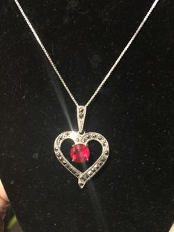 18" inches 925 Sterling silver necklace. 5 grams with Red Ruby and marcasite stones charm hart $15$15Palmdale, CA