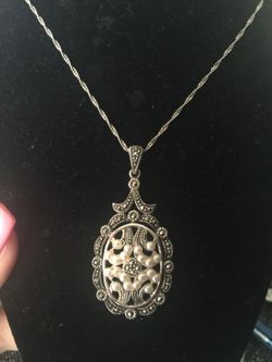 925 Italy Sterling silver necklace with Cameo Charm with marcasite stones 5 grams $30$30Palmdale, CA