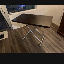 Convertible dining table to coffee table adjustable height Brown wood silver legs$175Burbank, CA