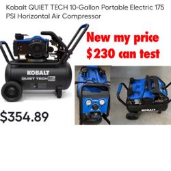 New Kobalt QUIET TECH 10-Gallon Portable Electric 175 PSI Horizontal Air Compressor $230 firm can test cash only pick up east Palmdale $230Palmdale, CA