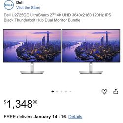 Dell U2725QE UltraSharp 27" 4K UHD 3840x2160 120Hz IPS Black Thunderbolt Hub Dual Monitor Bundle$1,000Palmdale, CA