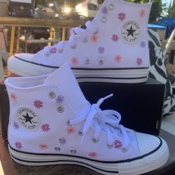 Amethyst Pink converse with flowered embroidery women’s size 8$19Quartz Hill, CA