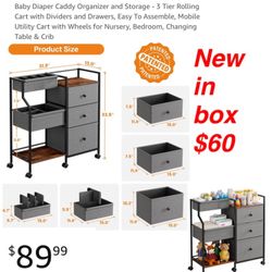 New in box just opened to make sure it’s complete Baby Diaper Caddy Organizer and Storage - 3 Tier Rolling Cart with Dividers and Drawers, $60 $60Palmdale, CA