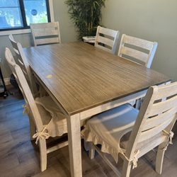 Beachy White/Light Brown Dining Table & 6 Chairs$200Lake View Terrace, CA