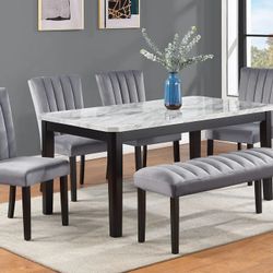 6 pc Bridgend black finish wood white faux marble top dining table set with bench🔷️comedor De 6 Piezas Nuevo En Caja $599Los Angeles, CA