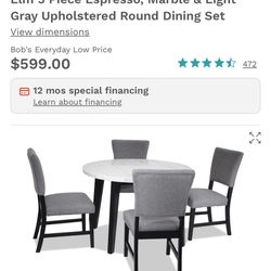 Elm 5 Piece Espresso, Marble & Light Gray Upholstered Round Dining Set$420Glendale, CA