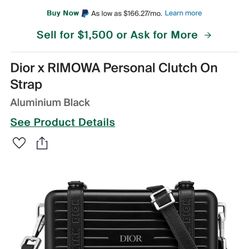 Christian Dior X Rimowa Clutch Bag $2,000Los Angeles, CA