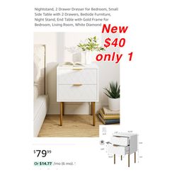 New Nightstand, 2 Drawer Dresser for Bedroom, Small Side Table with 2 Drawers, Bedside Furniture, Night Stand, End Table with Gold Frame $40$40Acton, CA