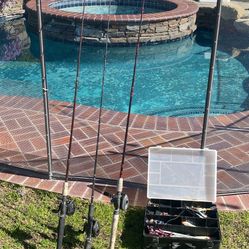 Three (3) Shimano and Daiwa Reels with Rods plus a Tackle Box with Rapalas ,worms,ect$100Santa Clarita, CA