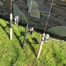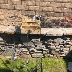 FOUR (4)Spinning Rods with Reels that would be GOOD for TROUT Fishing plus a Loaded Tackle Box.$95Santa Clarita, CA
