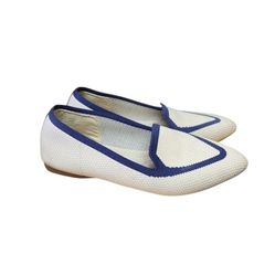 Birdies The Blackbird Eggshell/Navy Piping Knitted Flat Loafers Womans Size 7 $40Pearblossom, CA