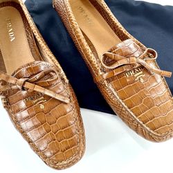 Rare Prada Crocodile Alligator Brown Driving Loafers Shoes Metallic Logo Sz 41 EU Italy$149Pasadena, CA