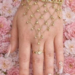 Avon Glamorous 2005 Vintage Hand Chain Ring Bracelet Gold Tone Rhinestone Fringe$20Lake View Terrace, CA