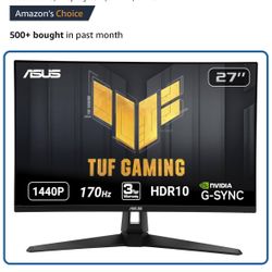 ASUS TUF Gaming VG27AQL1A 27” HDR Monitor, 1440P WQHD (2560 x 1440), 170Hz (Supports 144Hz), IPS, 1ms, G-SYNC Compatible, Extreme Low Motion Blur Sync$220Pasadena, CA