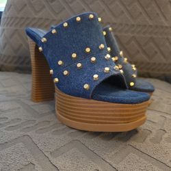 Brand new denim, sandals with heel, never worn 6.5$50Palmdale, CA
