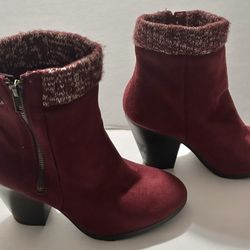 Shoe Dazzle Burgundy/Red Faux Suede Block Heel Winter Ankle Boots$25Lancaster, CA