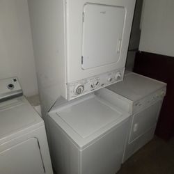 Like New Whirlpool 27" Wide Top Loading Washer With Agitator And Electric 220volt Dryer Stackable Laundry Center Single Unit $799Lancaster, CA