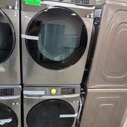 New Samsung Front Loading Washer And Electric 220volt Stackable Dryer Set In Platnum $1,150Lancaster, CA