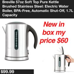 New in box Boil water faster than ever with the Breville Soft Top Pure Kettle. $60 cash only pick up only address will be provided when ready to come$60Palmdale, CA