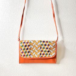 Hand Embroidered Fabric and Summer Orange Faux Leather Clutch Bag Purse$12Quartz Hill, CA
