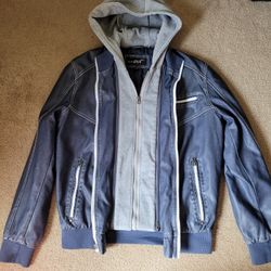 Blue Faux Leather Jacket Adult Medium With Removable Hood$30La Canada Flt, CA