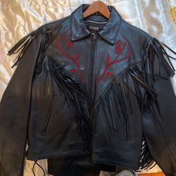 Leather Jacket And Matching Leather Face And Neck Mask ,Vest And Chaps And 2 Sissy Bar Bags$250Lancaster, CA