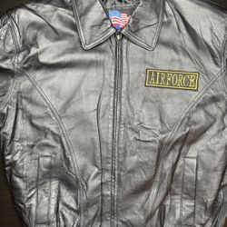 Leather Black Airforce Jacket Mens Double Sided With Patches Medium$50Pasadena, CA