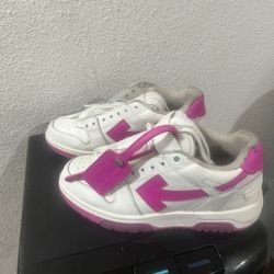 OUT OF OFFICE PATENT-LEATHER LOW-TOP TRAINERS IN FUCHSIA$450Lancaster, CA