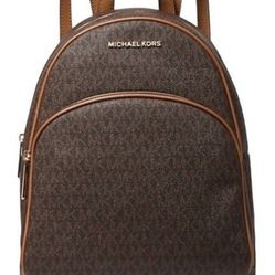 Michael Kors Abbey Medium Logo and Pebbled Leather Backpack Brown $120Lancaster, CA