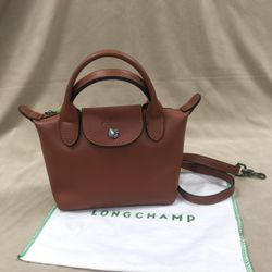 Longchamp Mini Le Pliage Cuir Leather Top Handle Bag Cognac$150Monrovia, CA