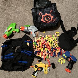 (4) Nerf Guns With Ammo, Vest, Holster, Target Bag Which Also Stores Equipment $25Palmdale, CA