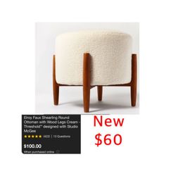 New threshold round faux shepherd Ottoman with wooden legs $60 east Palmdale $60Palmdale, CA